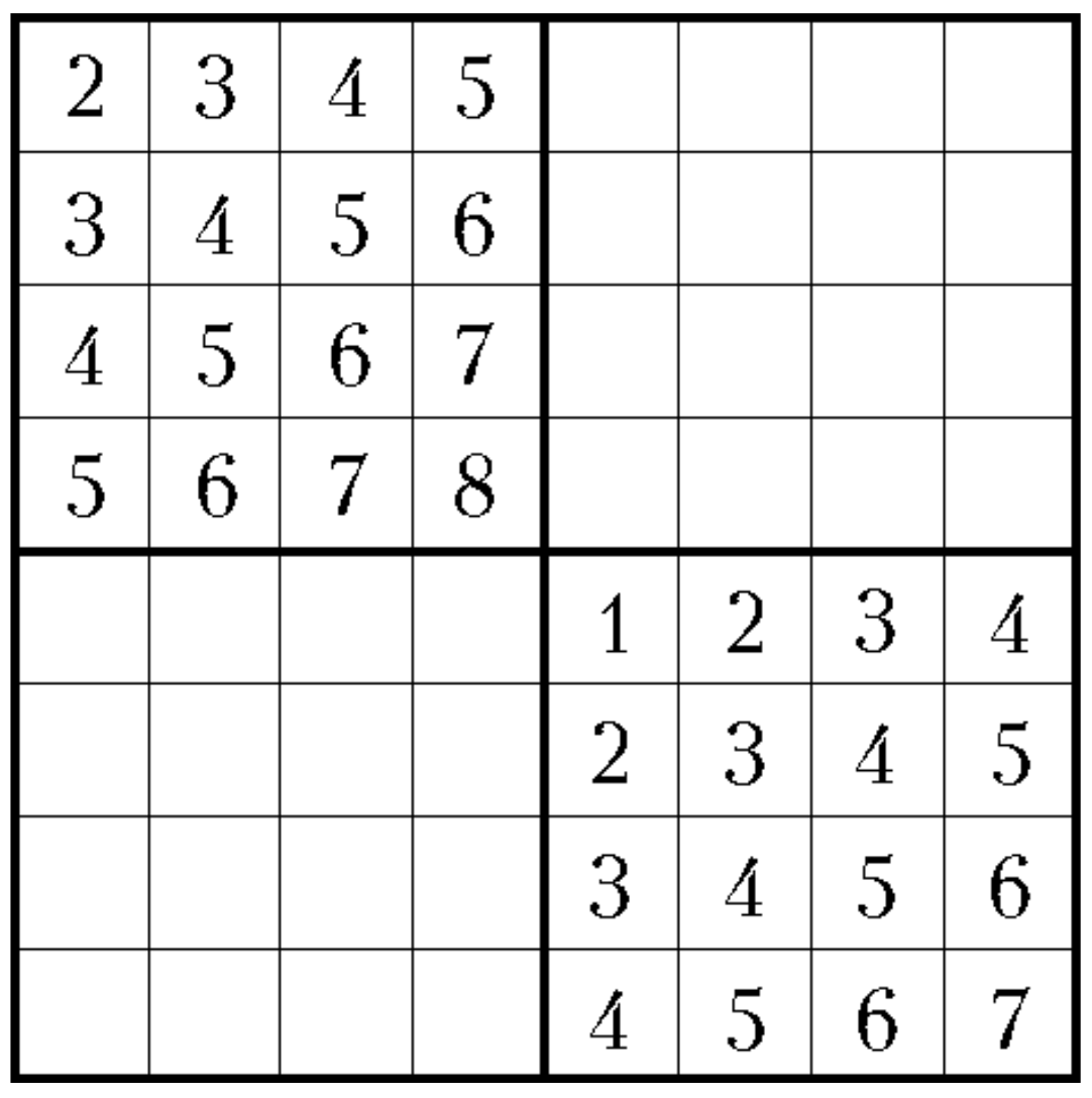 Problem 1-4. Answer: The two remaining sums are 12 and 16, and the numbers themselves are either (-1), 2, 6, and 10, or (-3/2), 5/2, 13/2, and 19/2.