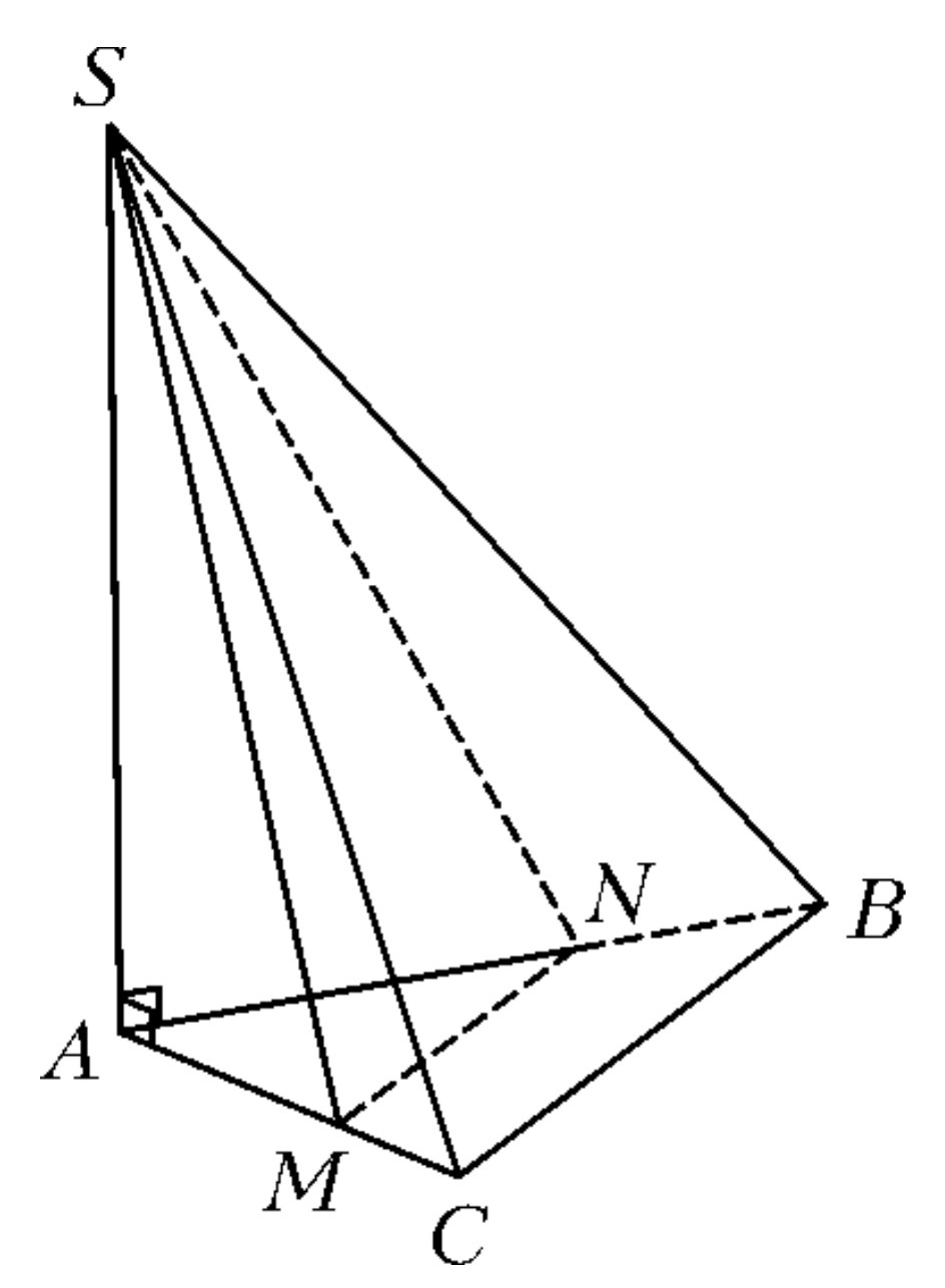 Problem 1-26. Answer: exists. An example of such a pyramid is shown in Figure 9. It is constructed as follows. Take a triangular pyramid SABC, where the lateral edge SA is perpendicular to the base plane. Its lateral faces SAC and SAB are perpendicular to the base (as planes passing through the perpendicular AS to the base). Now, let’s take arbitrary points M and N on the sides AC and AB of the base respectively. The pyramid SMNBC satisfies the condition of the problem.